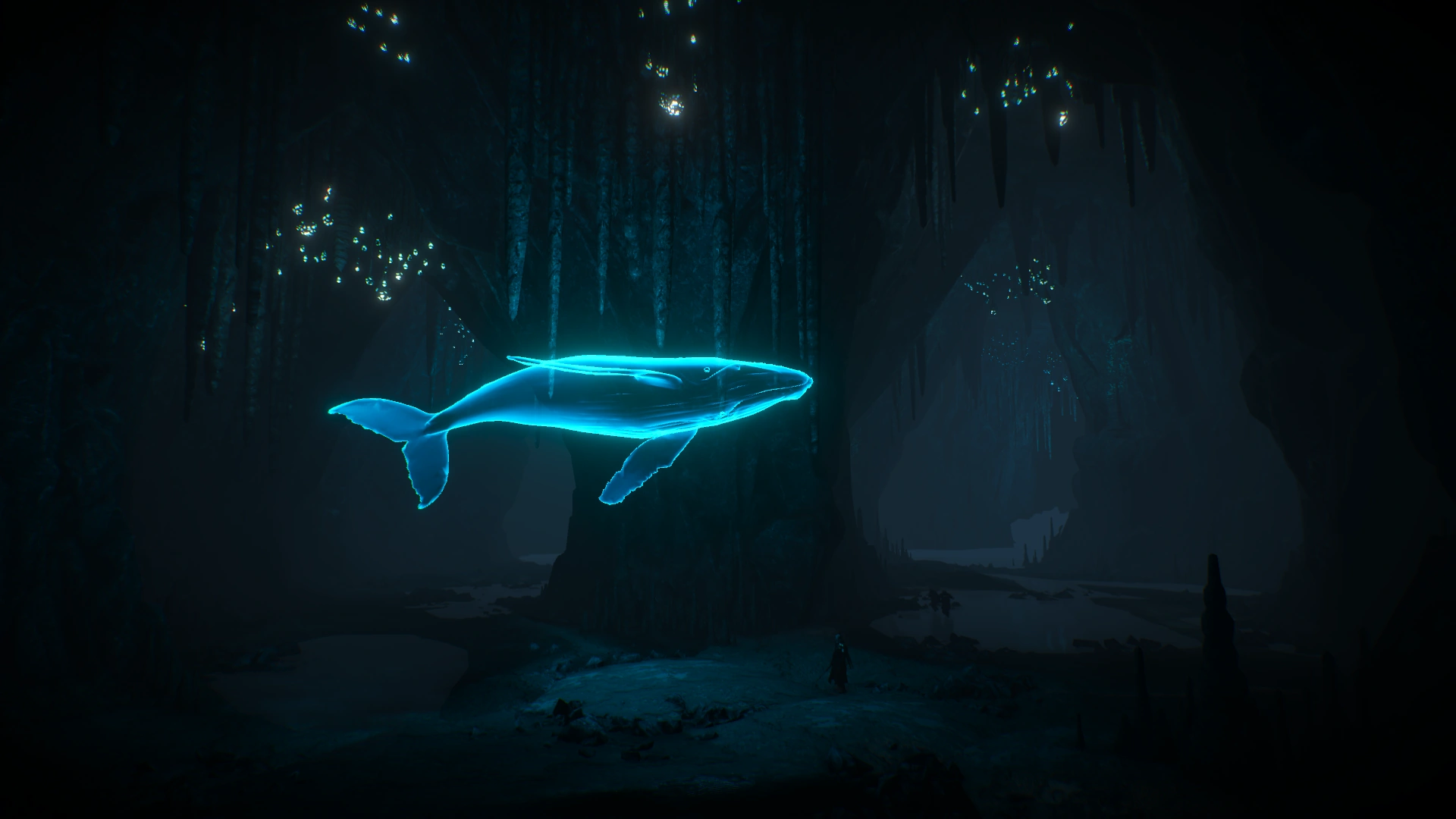 Wieloryb pojawiający się w jaskini w Gwint: Wiedźmińska Gra Karciana