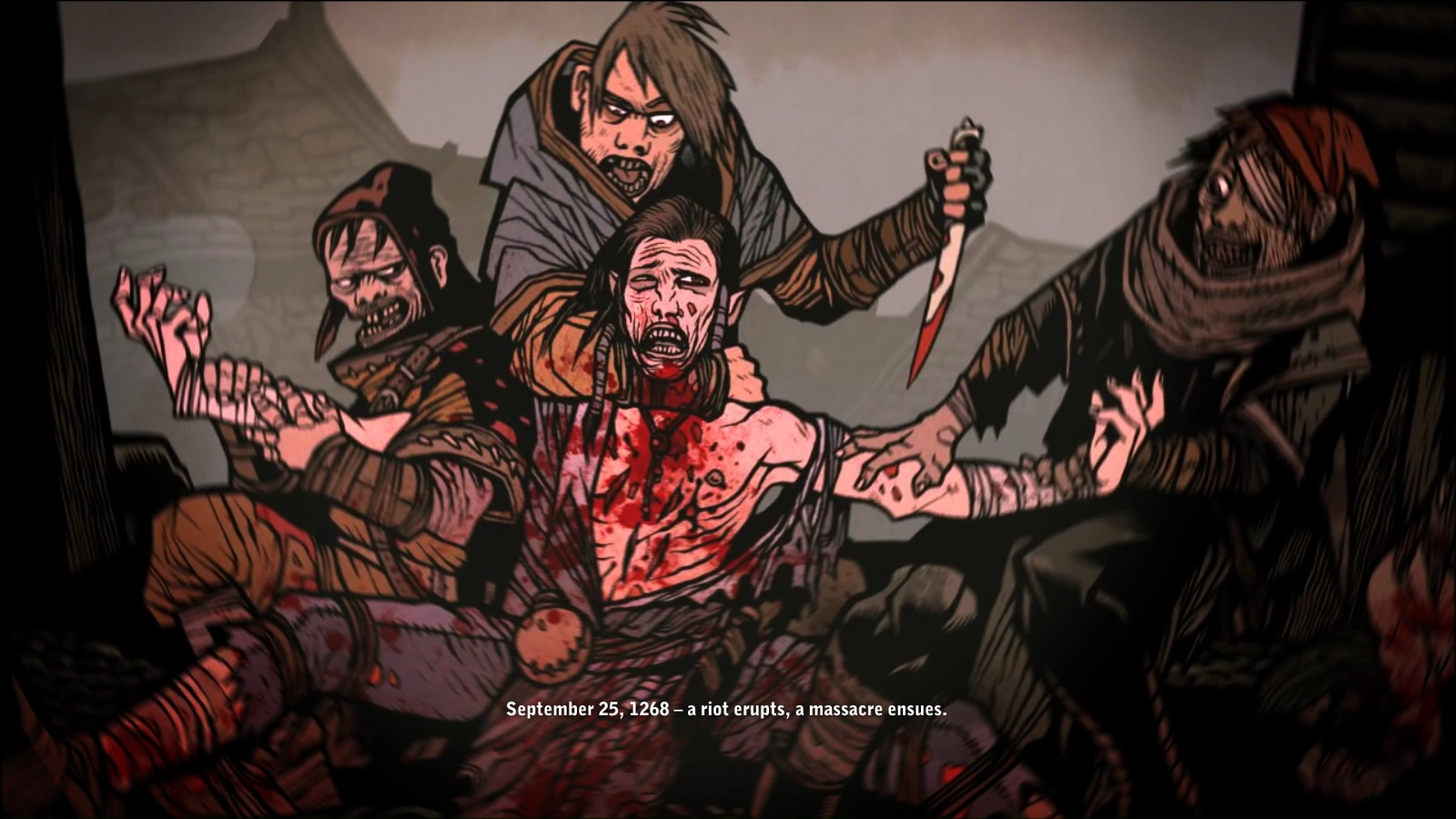 W trakcie pogromu w obronie nieludzi stanął Geralt z Rivii, który został ugodzony widłami w pierś[2]. Pogrom powstrzymały wspólnie Yennefer z Vengerbergu oraz Triss Merigold, które wspólnymi siłami rzuciły zaklęcie, które zapisało się w historii jako Niszczące Gradobicie Merigold. Następnie do działania wkroczyło wojsko[3].