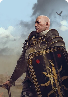 Cechowała go fanatyczna lojalność wobec cesarza. Razem z ambasadorem Shilardem odpowiadali za porwanie Triss Merigold. Znali sekretne plany Loży.