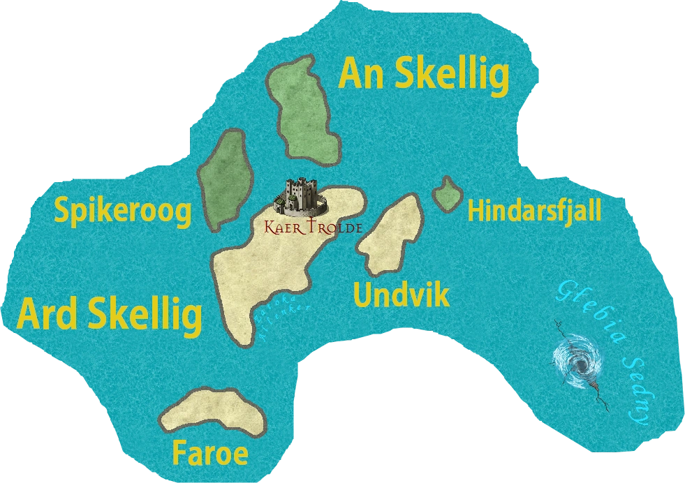 Górzysty archipelag znajduje się niedaleko od brzegów Cintry, oddziela go od niej Głębia Sedny. Składa się z mnóstwa wysp, z których największą jest Ard Skellig, na którym zbudowano największe miasto, warownię i stolicę państwa – Kaer Trolde. Mniejszą wyspą jest An Skellig, oddzielona od większej cieśniną Sund, która od strony północnej ma liczne fiordy, a od południowej jest płaska i niska. Spikeroog, leżąca u zachodniego wlotu do cieśniny Sund jest poprzecinana licznymi, wysokimi pasmami gór, często tonącymi w chmurach. Kolejną wyspą, znajdującą się na wschód od An Skellig, jest Undvik, na której w skalistych klifach schronienie znajdowały liczne ptaki morskie. Jeszcze dalej na wschód znajduje się najmniejsza, ale i jedna z najwyższych wysp archipelagu Hindarsfjall, gdzie znajduje się Święty Gaj Hindar. Najdalej na południe wysuniętą wysepką jest Faroe.