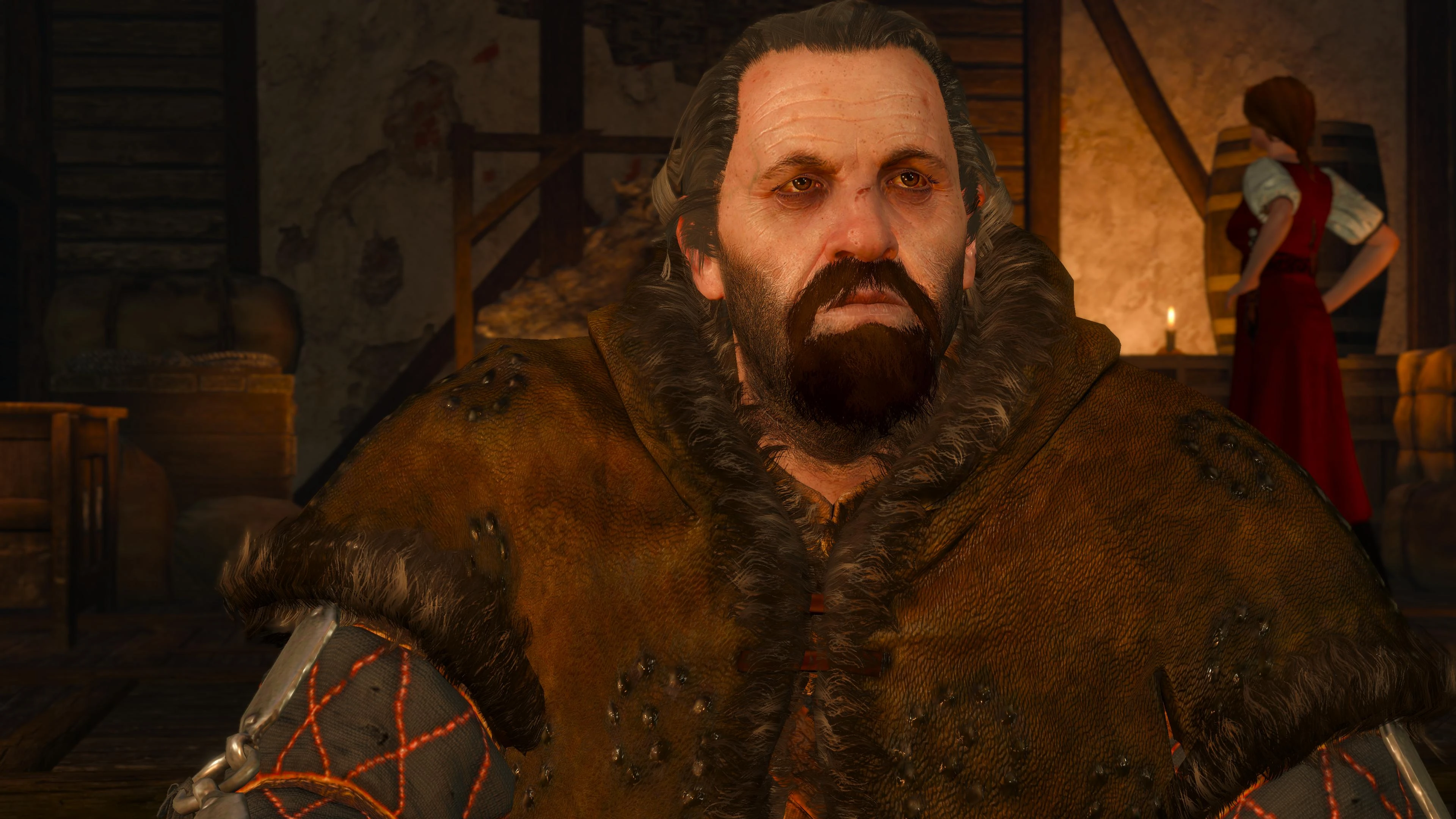 Bojąc się ataku ze strony bandytów Tasaka i Ernsta van Hoorna, Hattori prosi Geralta o zorganizowanie ochrony. Wybór elfa pada na Sukrusa, który powinien przebywać w karczmie Złocisty Jesiotr. W momencie, gdy przybywa tam wiedźmin, były pirat właśnie bije się ze swoim szwagrem. Po pokonaniu kupca Sukrus rzuca się na Geralta. Następnie obaj idą do karczmy, gdzie Biały Wilk tłumaczy najemnikowi powód swojej wizyty. Sukrus najpierw chce, aby wiedźmin rozwiązał problem nieudanego interesu ze szwagrem.