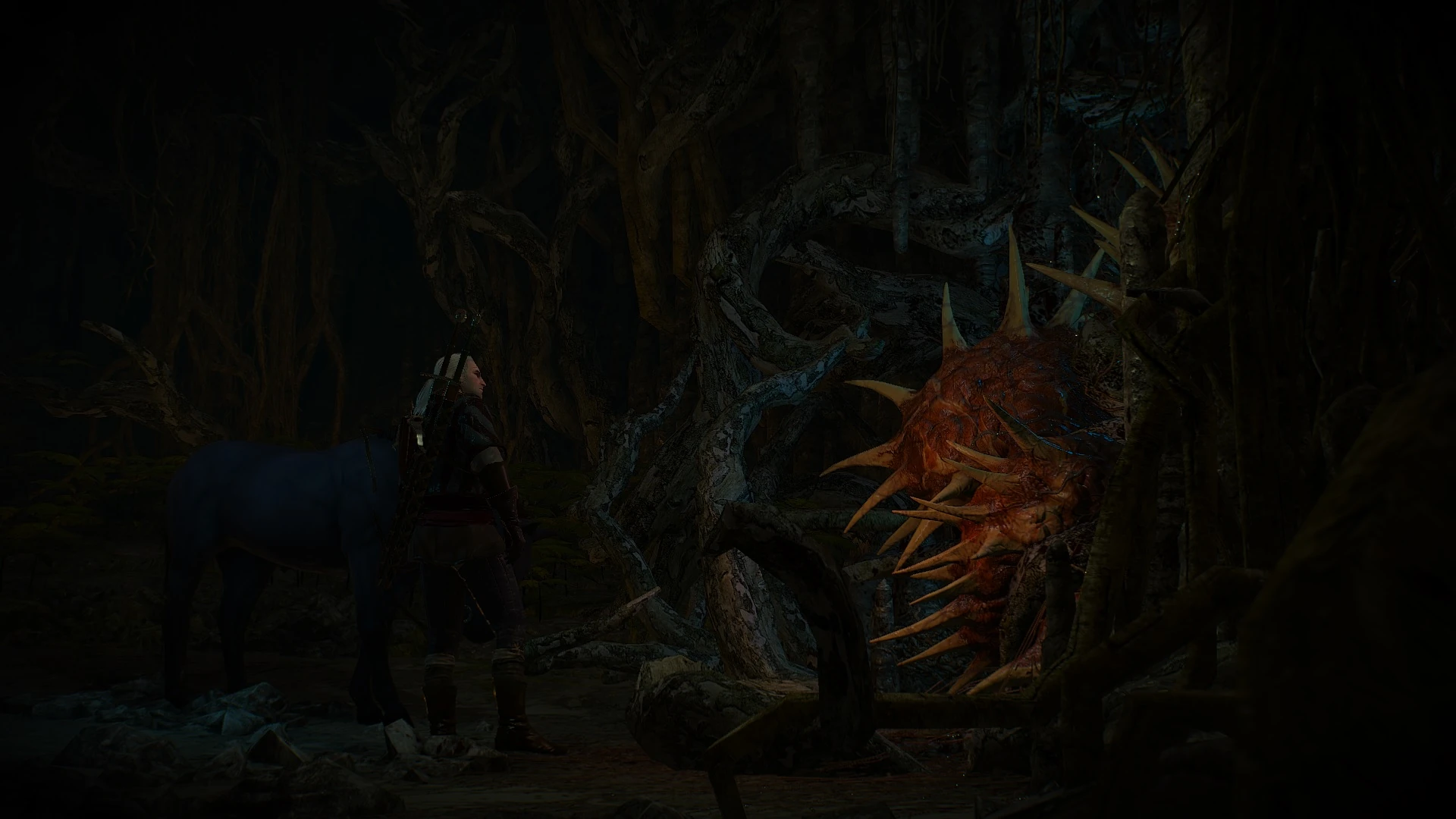 Geralt odkrył, że w jaskini pod Szepczącym Wzgórzem uwięziony jest duch kobiety. Wiedźmin pomógł duchowi opanować ciało konia i w ten sposób zwrócił mu wolność.