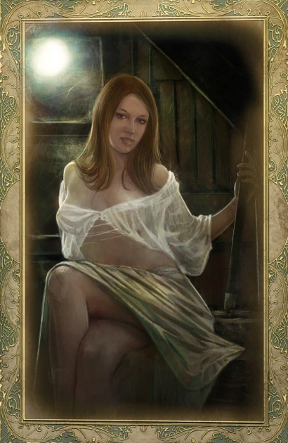 Wieczorem Geralt przyniósł jej obiecany alkohol. Po wypiciu oboje weszli do budynku, gdzie doszło między nimi do zbliżenia. Przebywający w pobliżu ludzie myśleli, że w młynie znowu pojawiły się duchy.