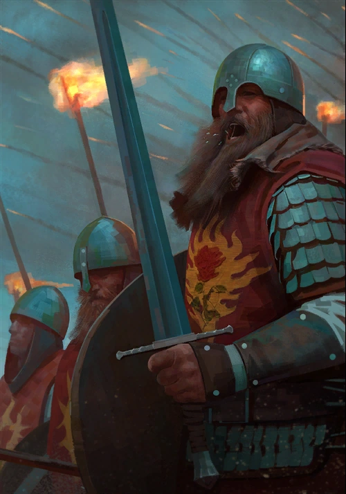 - "W tej sytuacji wielu przepowiada koniec świata - według tych wróżb, z północy nadejdzie lód, który pochłonie Królestwa Nordlingów. Wydaje się, że może w tym tkwić ziarno prawdy, gdyż zimy stają się dłuższe, a dni chłodniejsze... Niedawno założony Zakon Płonącej Róży uważa jednak, że potęga ognia ocali ludzi od lodu - ale przeżyją tylko ci, którzy będą postępować zgodnie z nakazami zakonnych rycerzy."