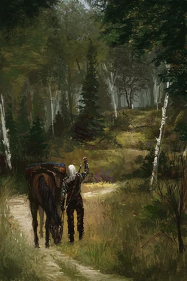 Około południa Geralt poi Płotkę w źródle. Nagle klacz zaczyna zachowywać się niespokojnie. Wiedźmin uspokaja ją Znakiem, po czym zauważa uformowany z grzybów krąg – czarcie koło. Po chwili namysłu wskakuje w siodło i wraca po śladach z powrotem.
